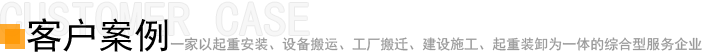 • 公司以往從事過:冷水機組、發(fā)電機組、大型空調(diào)、鍋爐、燃?xì)鈾C、機床、精密儀器、印刷機、干洗機、注塑機、壓力機、配電機組、高層水塔